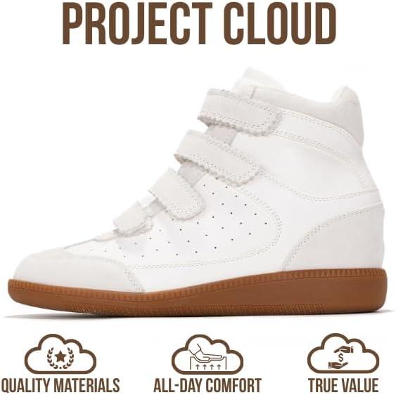 Project Cloud Wedge Sneakers for Women – Memory Foam Insole Womens Sneakers – Lightweight & Non Hi Top Womens Shoes – Stylish Fall Shoes for Women 2025 (Marant)(White)