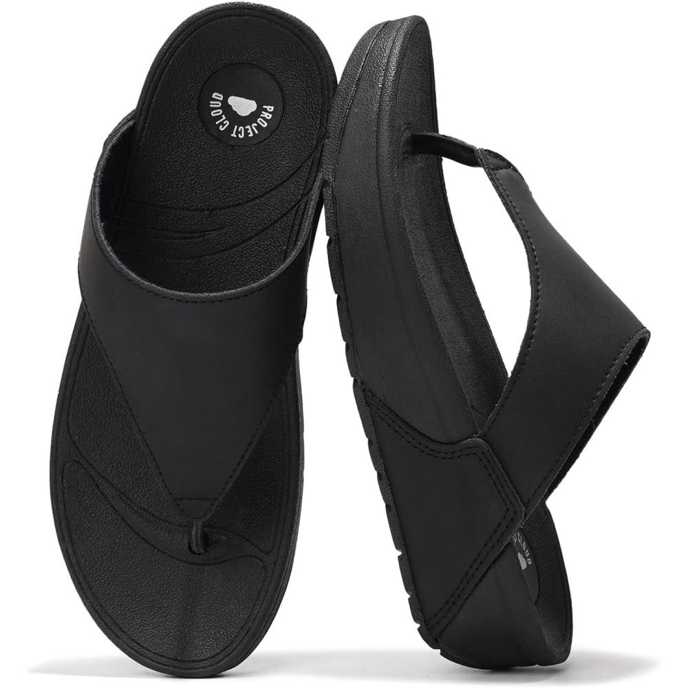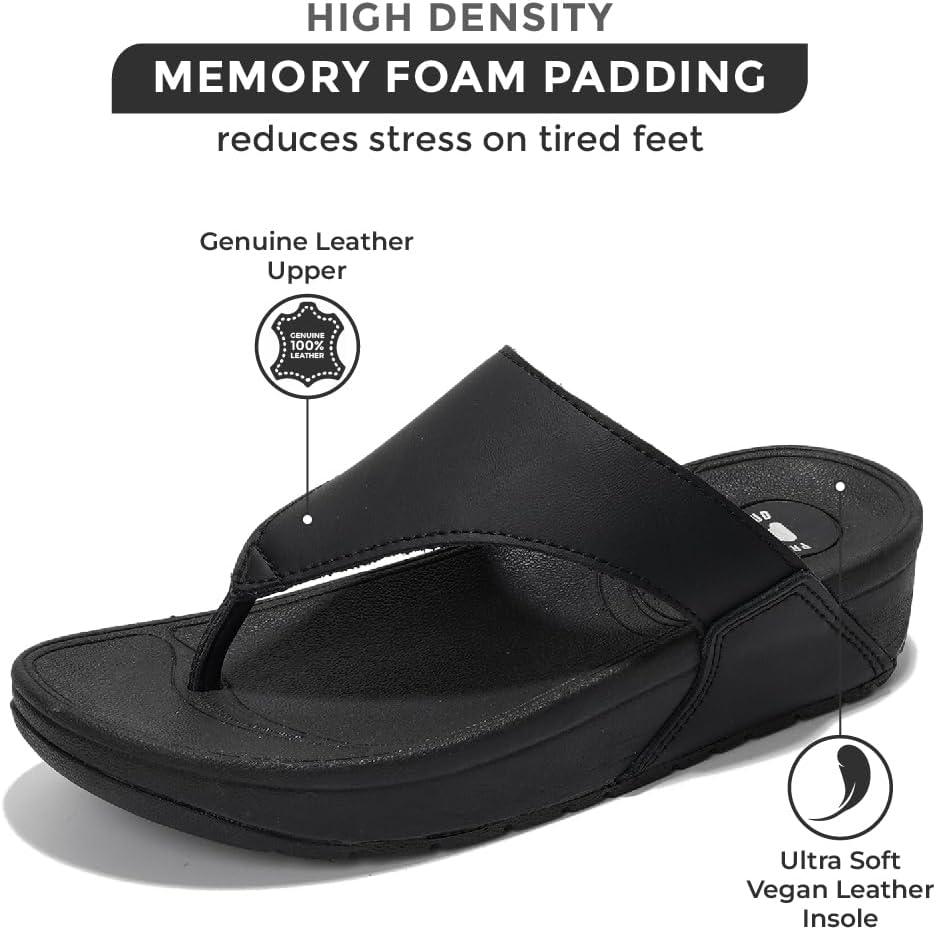 Project Cloud Womens Thong Comfortable Memory Foam Platform Sandals & Flip flops Non Slip Footwear, Leather Sandals for Women 2025 (Arlee)(Black)