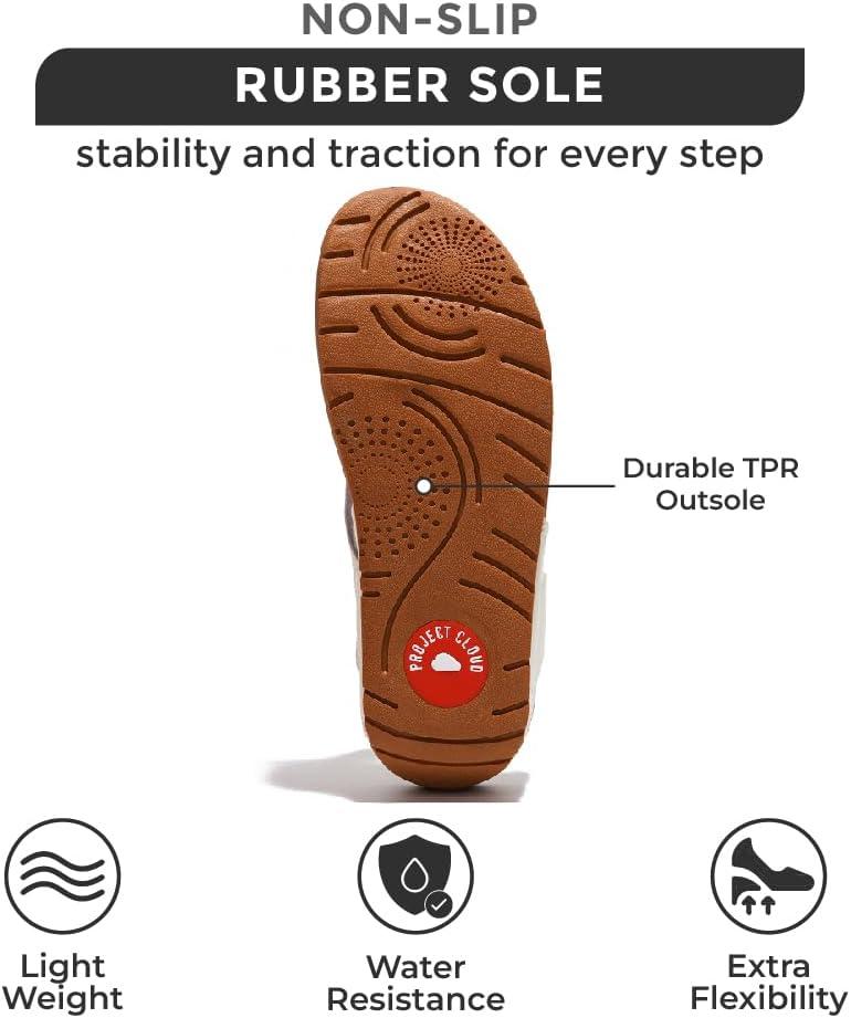 Project Cloud Womens Thong Comfortable Memory Foam Platform Sandals & Flip flops Non Slip Footwear, Leather Sandals for Women 2025 (Arlee)(Brown)