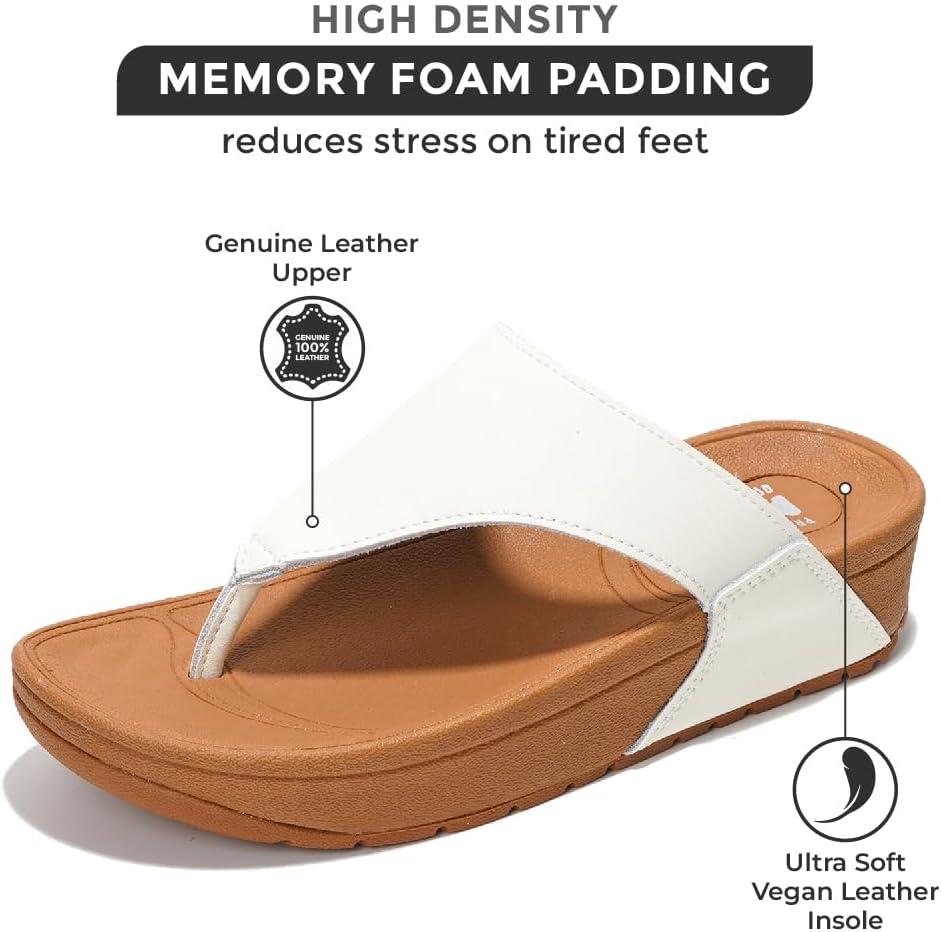 Project Cloud Womens Thong Comfortable Memory Foam Platform Sandals & Flip flops Non Slip Footwear, Leather Sandals for Women 2025 (Arlee)(White)