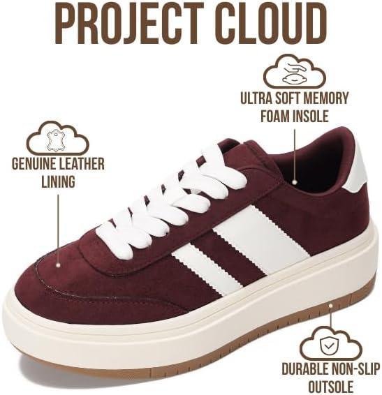 Women’s Lace-Up Fashion Sneakers – Nita by Project Cloud(Maroon)