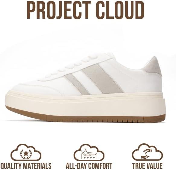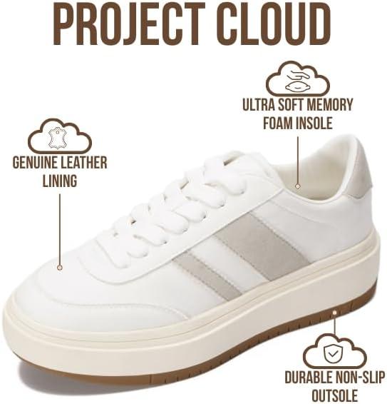 Women’s Lace-Up Fashion Sneakers – Nita by Project Cloud(White Silver)